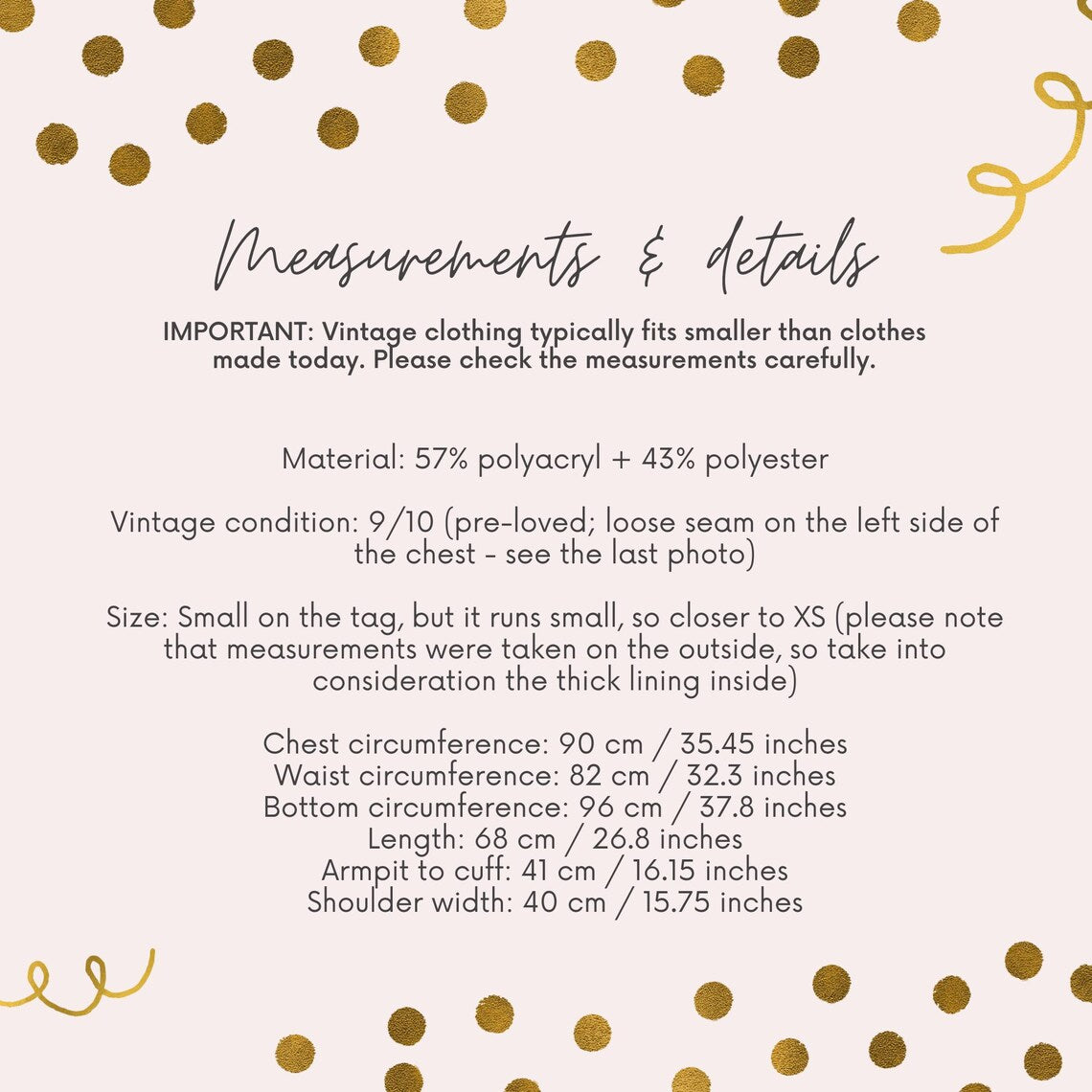 - Chest: 90 cm / 35.4 in